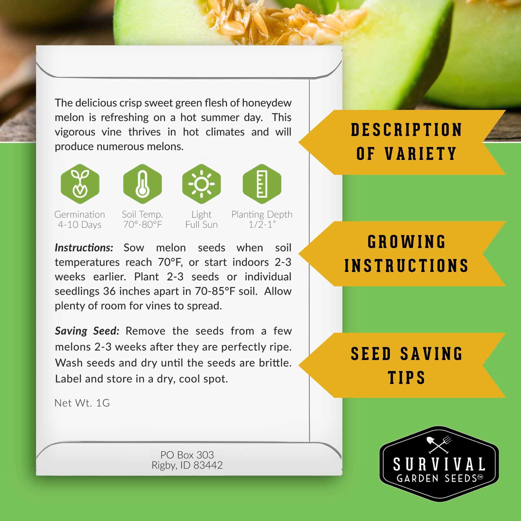 - 8 Heirloom Fruit Seed Varieties – Our fruit seed collection includes Alpine 'Regina' Strawberry, a perennial wild strawberry that doubles as bee-friendly ground cover; three classic melons: Hale's Best Cantaloupe, Honeydew, and Honey Rock Muskmelon; the unique Cucamelon, a small green fruit that looks like a mini watermelon and tastes like a citrusy cucumber; and three popular watermelons—Crimson Sweet Watermelon, Sugar Baby Watermelon, and Orangeglo Orange Watermelon.