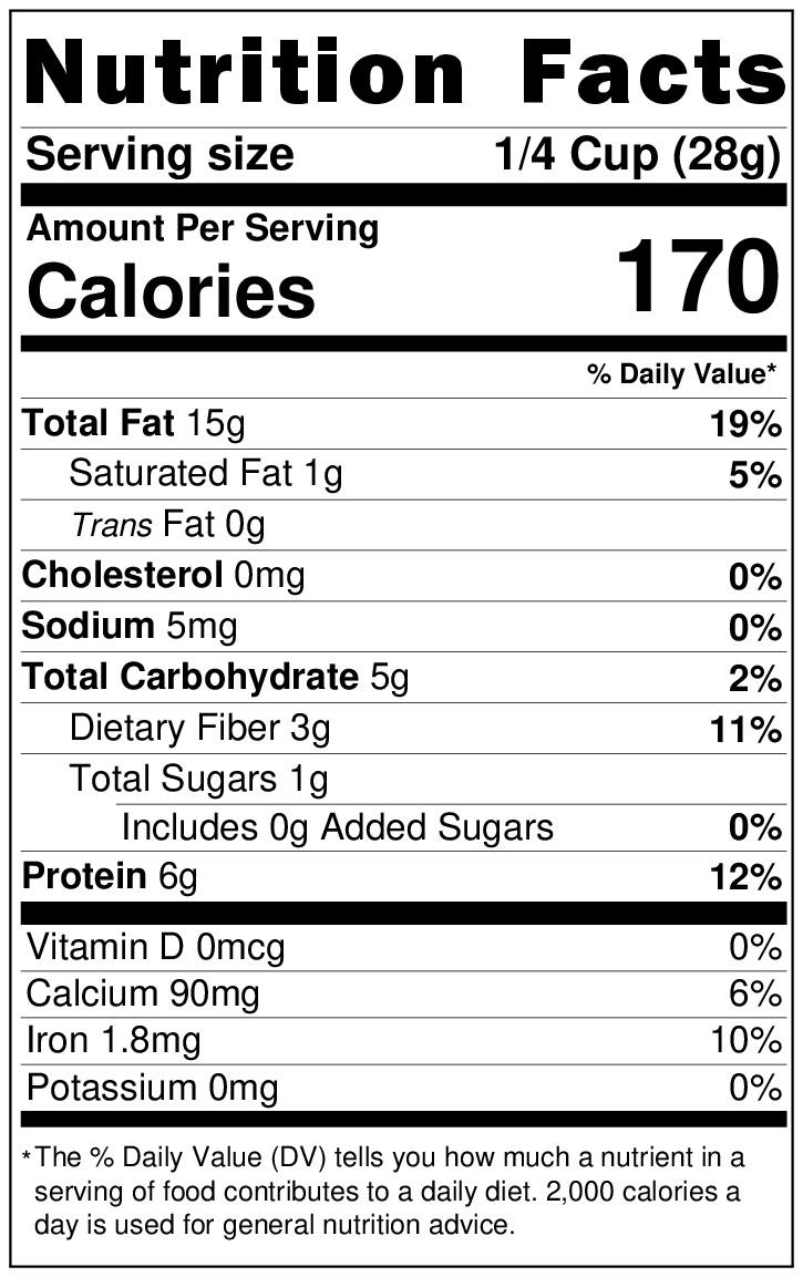 Allergen Statement: Product packed in a facility that also handles nuts, peanuts, soy, sesame, and wheat. 12 oz and 5 lb sizes only.