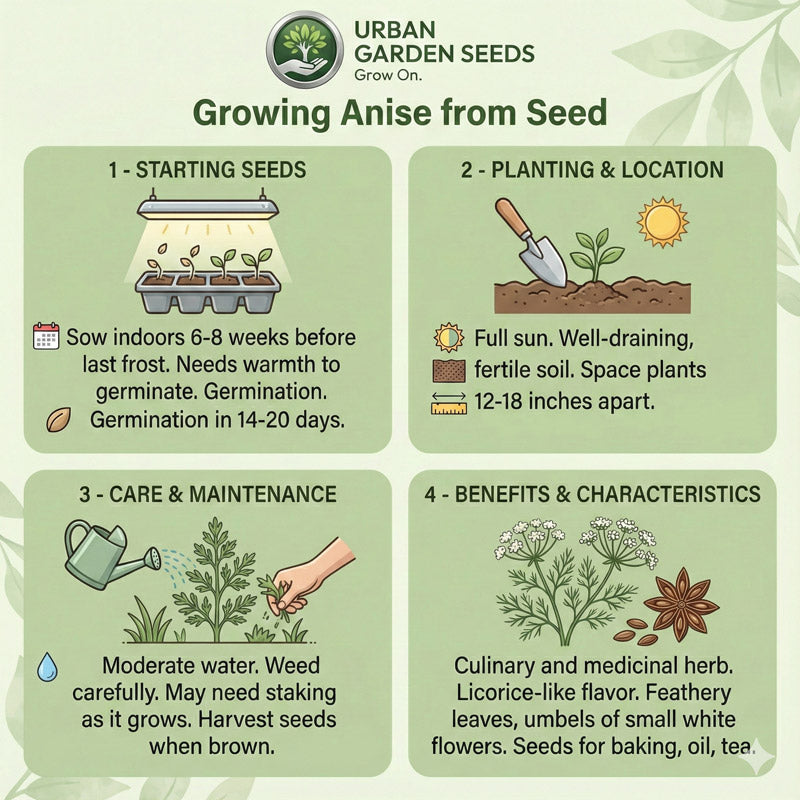 - Easy to Grow: Cultivate Anise with ease. This annual herb thrives in well-drained soil and requires full sun for optimal growth. With minimal care, you can enjoy a bountiful harvest of fresh Anise leaves and seeds.