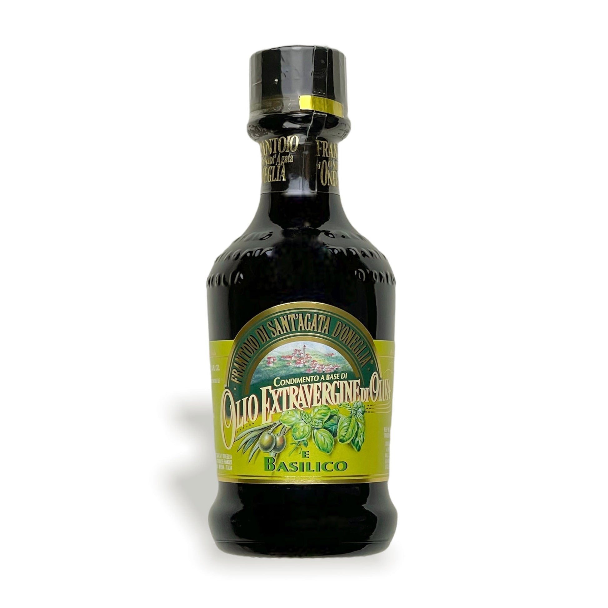 Frantoio Di Sant’agata D’Oneglia's Extra Virgin Olive Oil With Basil (100mL) is made with cold-pressed Taggiasca olives grown 200-500 meters above sea level along the Ligurian coast. This Basil EVOO has a strong flavor, a full-bodied, smooth appearance, and an intense and vivacious character. The natural olive oil is enhanced with fresh basil during traditional hand-pressing, giving it less than 0.5% acidity. Basil EVOO is ideal for use on meat or fish carpaccio as well as salads.