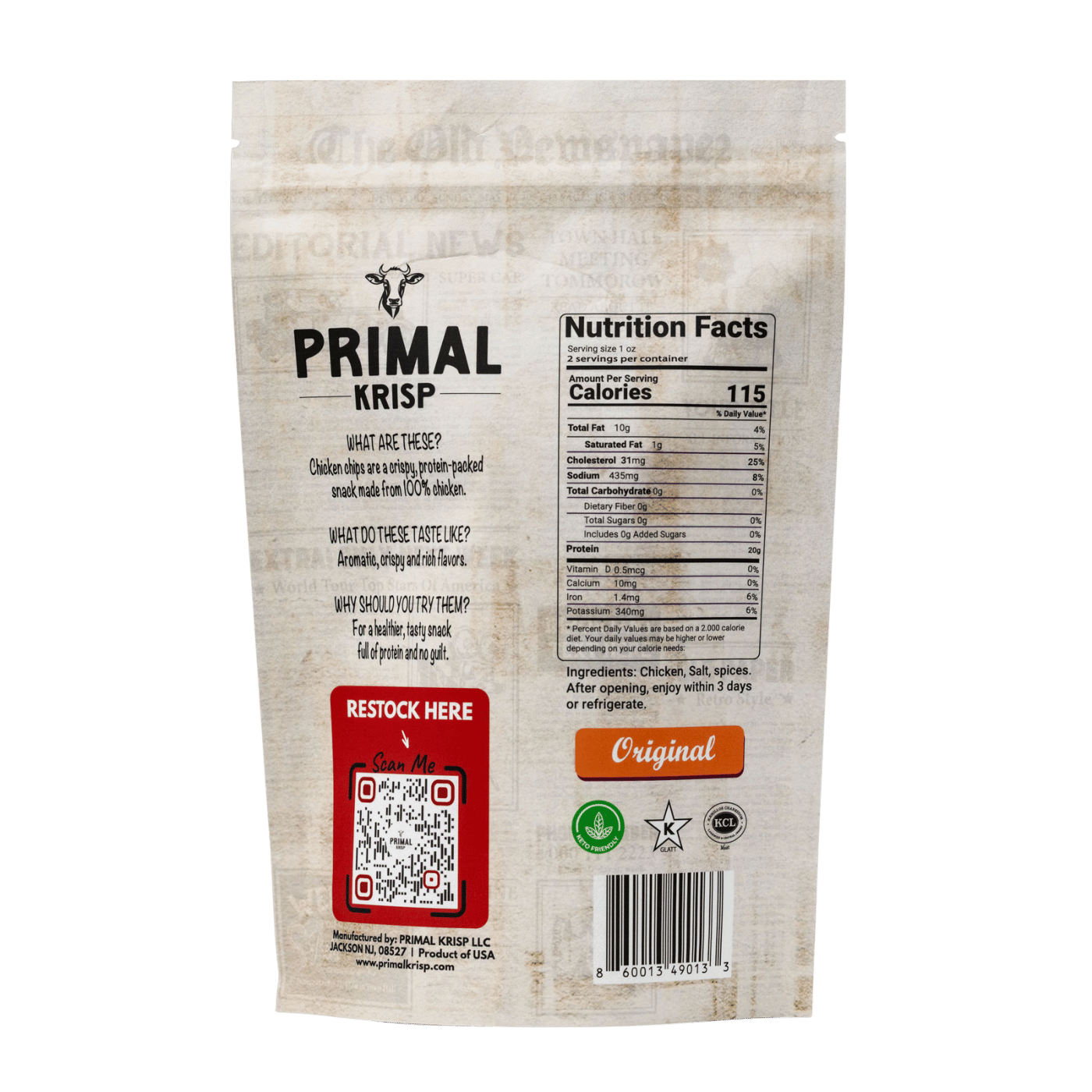 Made from real chicken, Chicken: Original chips offer a savory, protein-packed alternative to traditional snacks. Free from additives and sugar, they deliver pure, natural goodness in every bite.