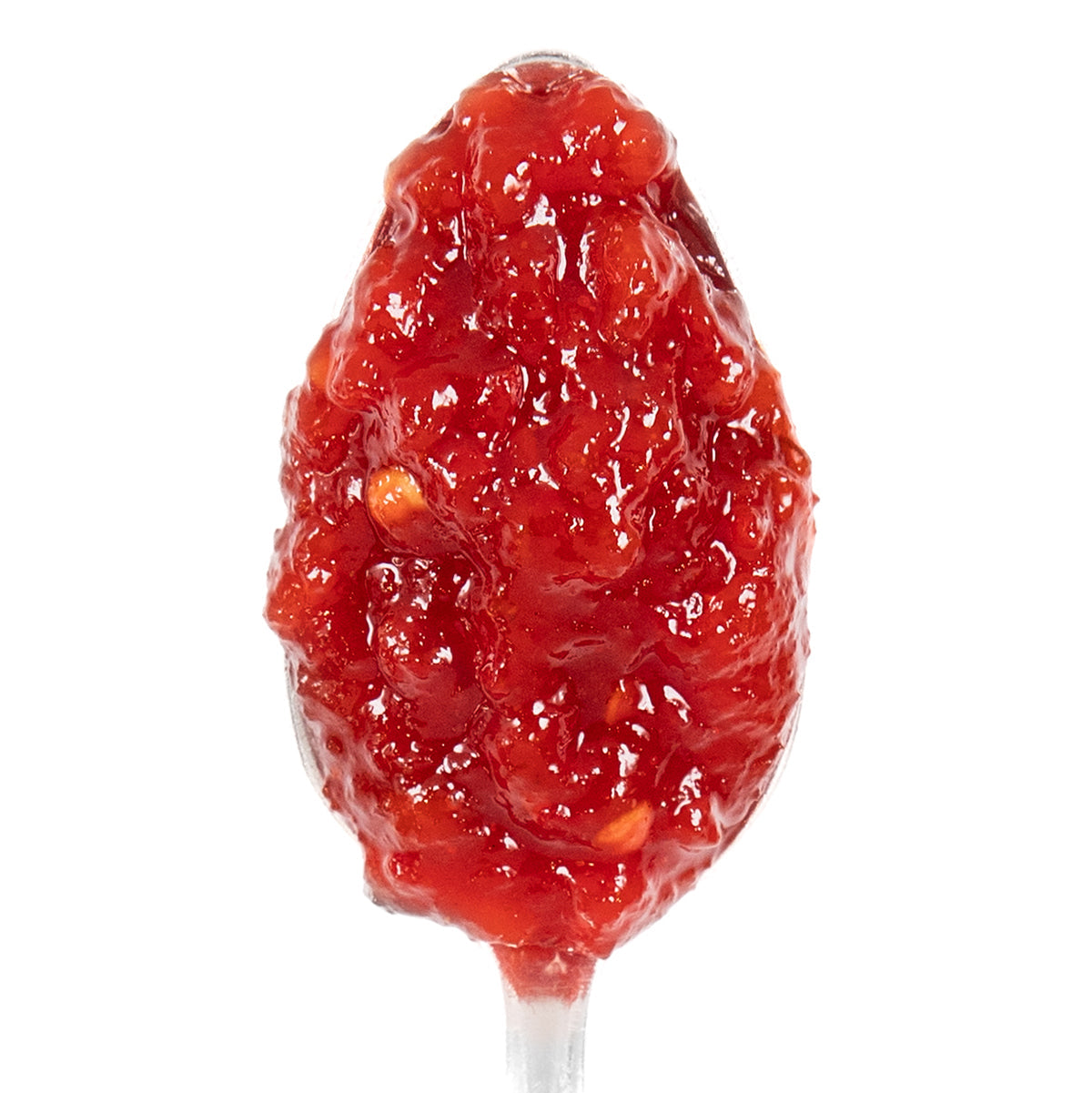 Featuring fresh locally grown organic Fresno chili peppers from Honey Field Farm and a hint of Thai chili peppers for extra heat, we cook these specialty peppers with apple cider vinegar, a little pure cane sugar for just a touch of sweetness, and ginger for additional fresh spice, to create a deliciously full flavored and hot chili jam.