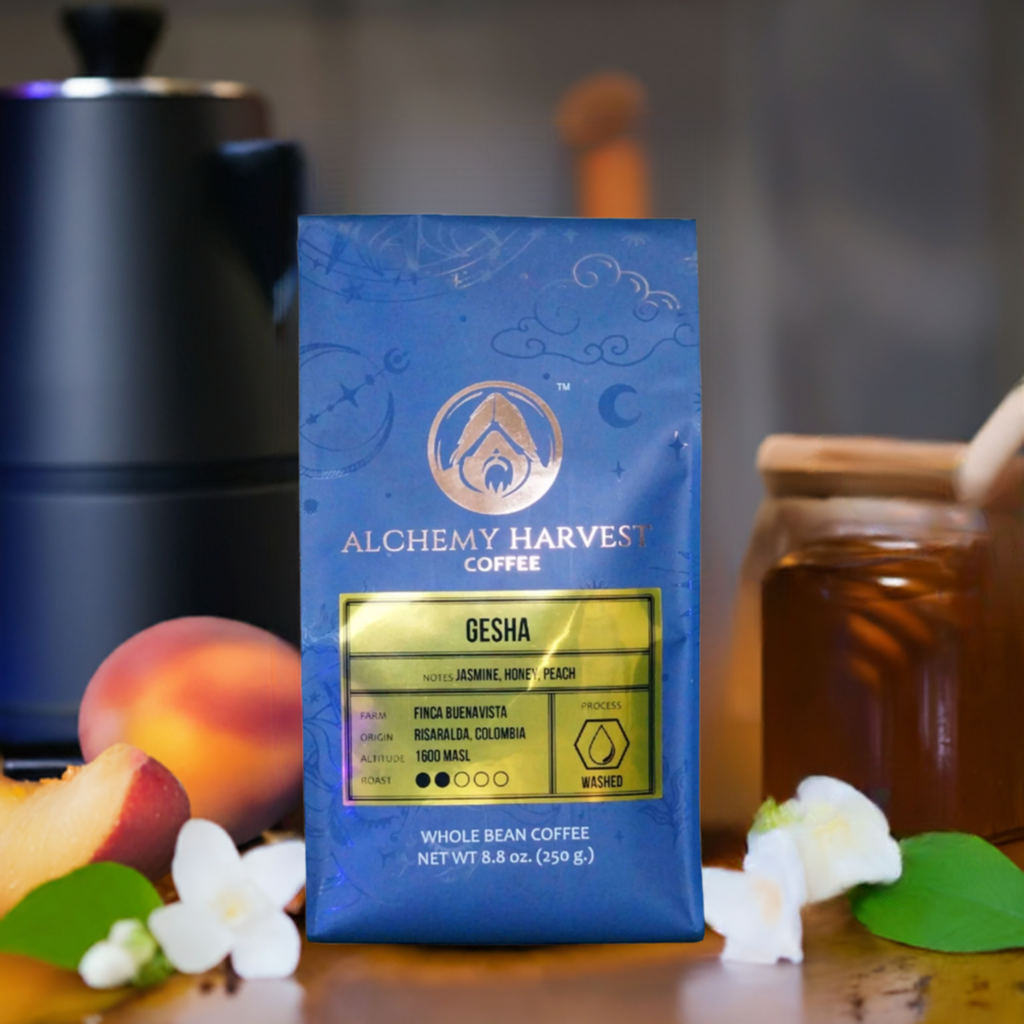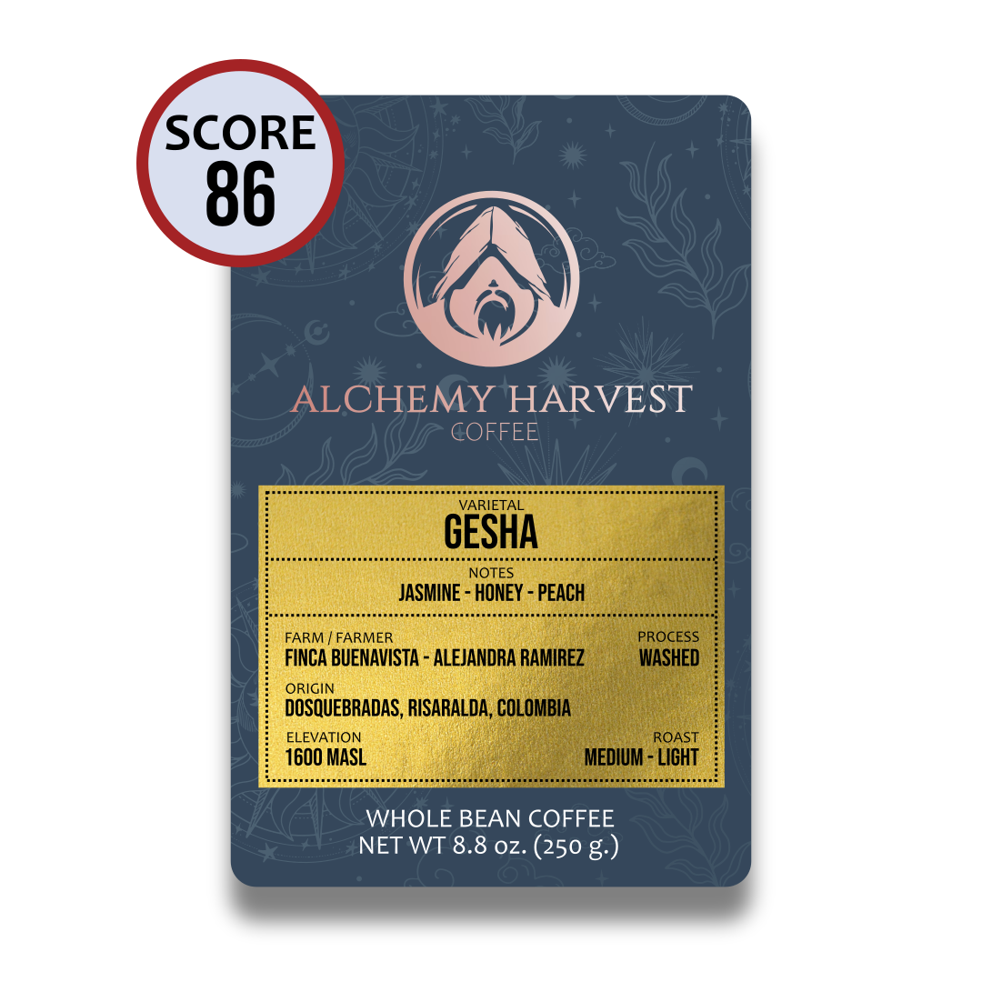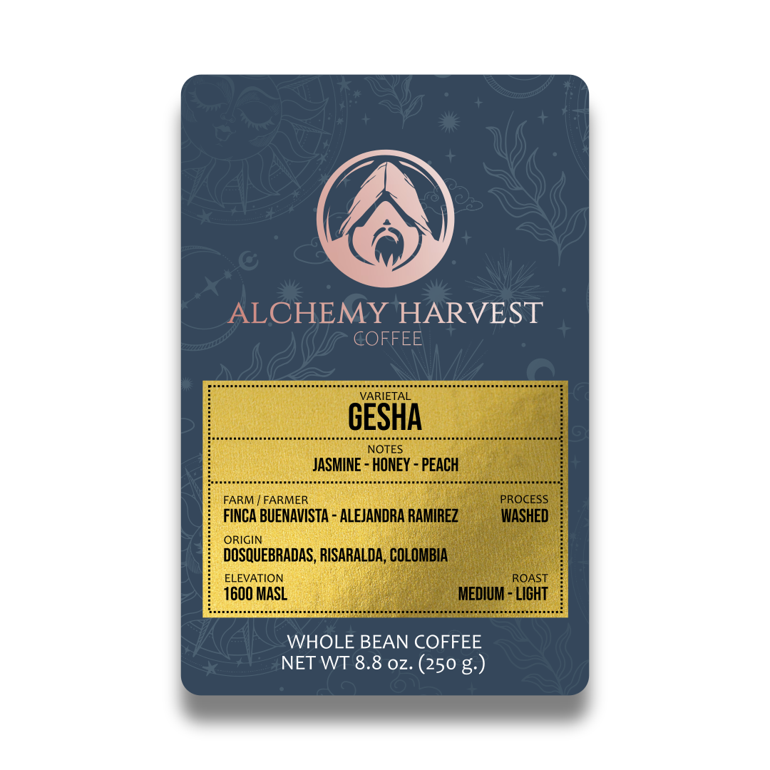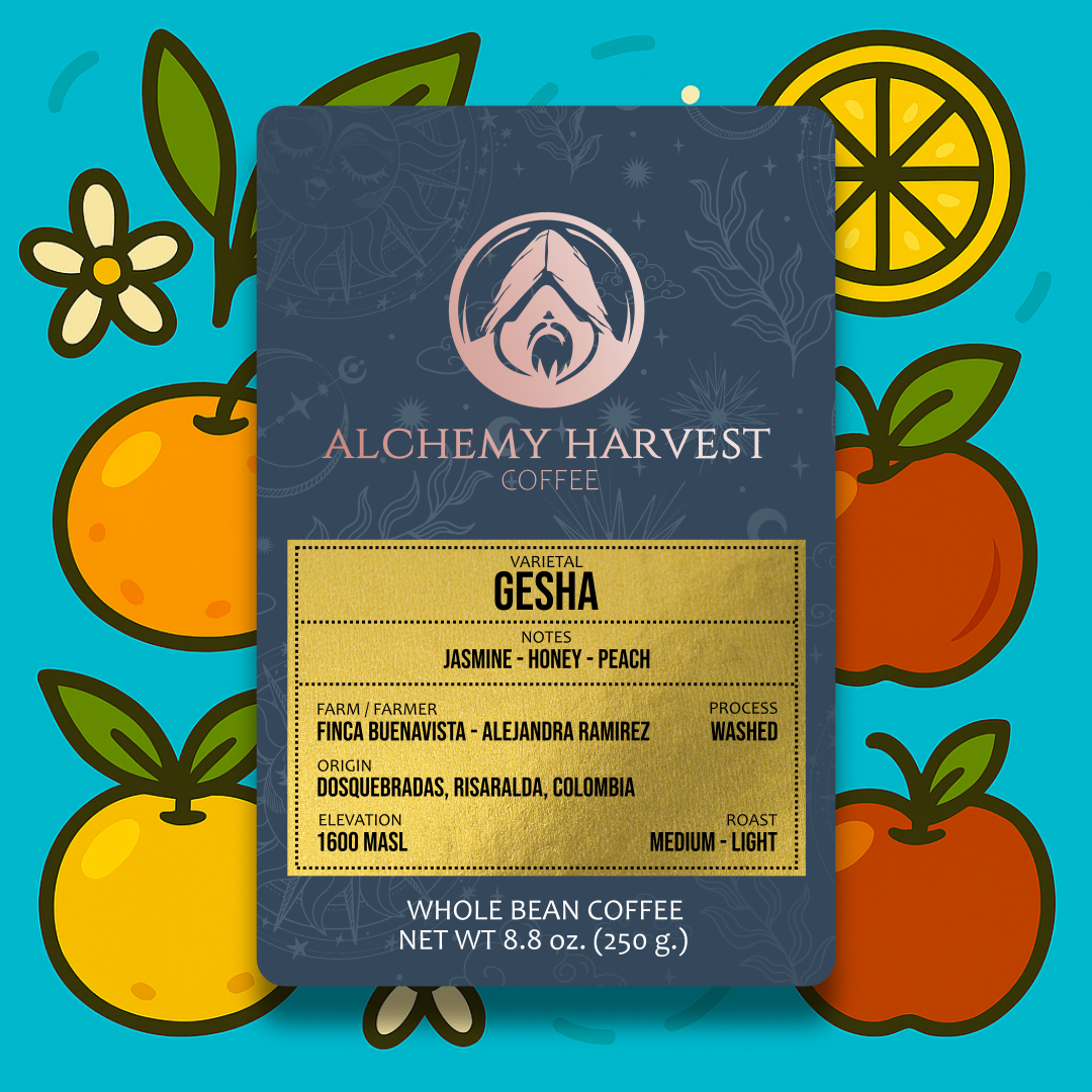From the enchanting hills of Dosquebradas, Risaralda at 1600 MASL, this ethereal lot from Finca Buenavista is cultivated by producer Alejandra Ramirez. Featuring the elegant Gesha varietal and processed using the washed method, this coffee unveils its true essence with floral finesse and silky sweetness.