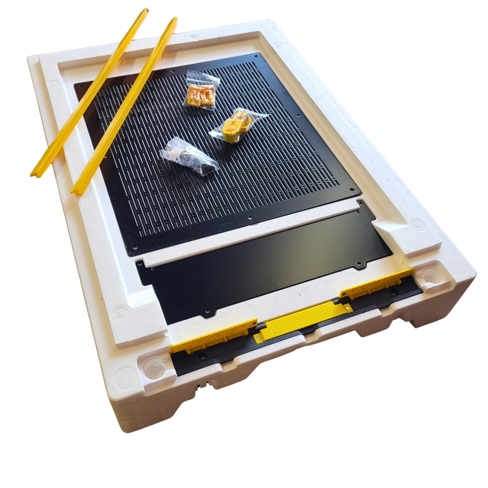 This kit is part of the Hive IQ system and includes the bottom board or base, queen excluder, and lid or cover. You can also add deep or medium boxes that will fit these pieces perfectly. These high-density EPS pieces are extremely well made and designed to give your colony excellent insulation in the summer and the winter and allow you to utilize the entire Hive IQ system.