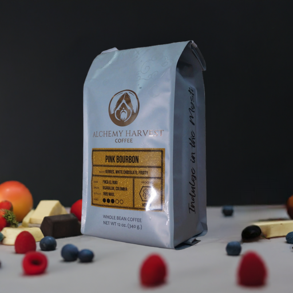 From the lofty heights of Santuario, Risaralda at 1800 MASL, this magical lot from Finca El Rubí is cultivated by producer Sergio Londoño. Featuring the vibrant Pink Bourbon varietal and processed using the honey method, this coffee is infused with a touch of alchemical wonder and aromatic charm.