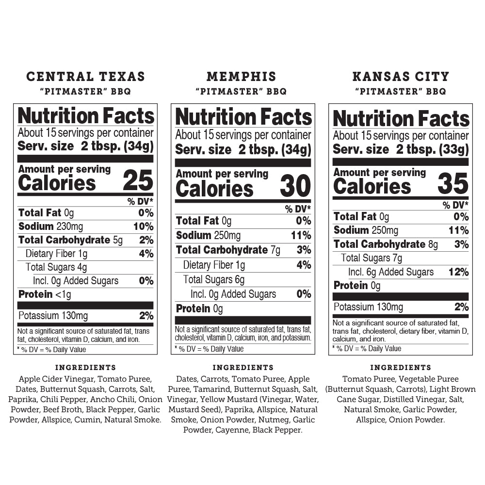 Taste the authentic regional flavors of three famous "Western" BBQ Regions (on or West of the Mississippi). Each BBQ Sauce pays homage to a famous American BBQ tradition and barbecue style. Cook and taste the history and deep traditions of these regions with our amazing Pitmaster Western BBQ Sampler.
