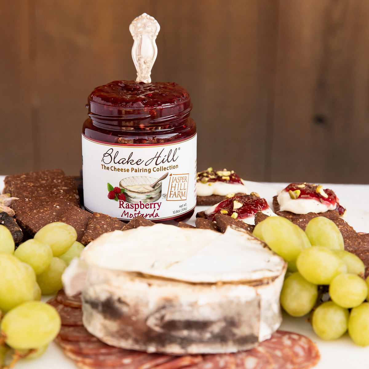 Created with award-winning cheesemakers Jasper Hill Farm, this jam features fruity, tart, ripe-red raspberries and spicy mustard - a timeless flavor combination fit for cheese. We add a little red pepper heat to counterpoint the rich creaminess of Harbison - a true bespoke pairing.