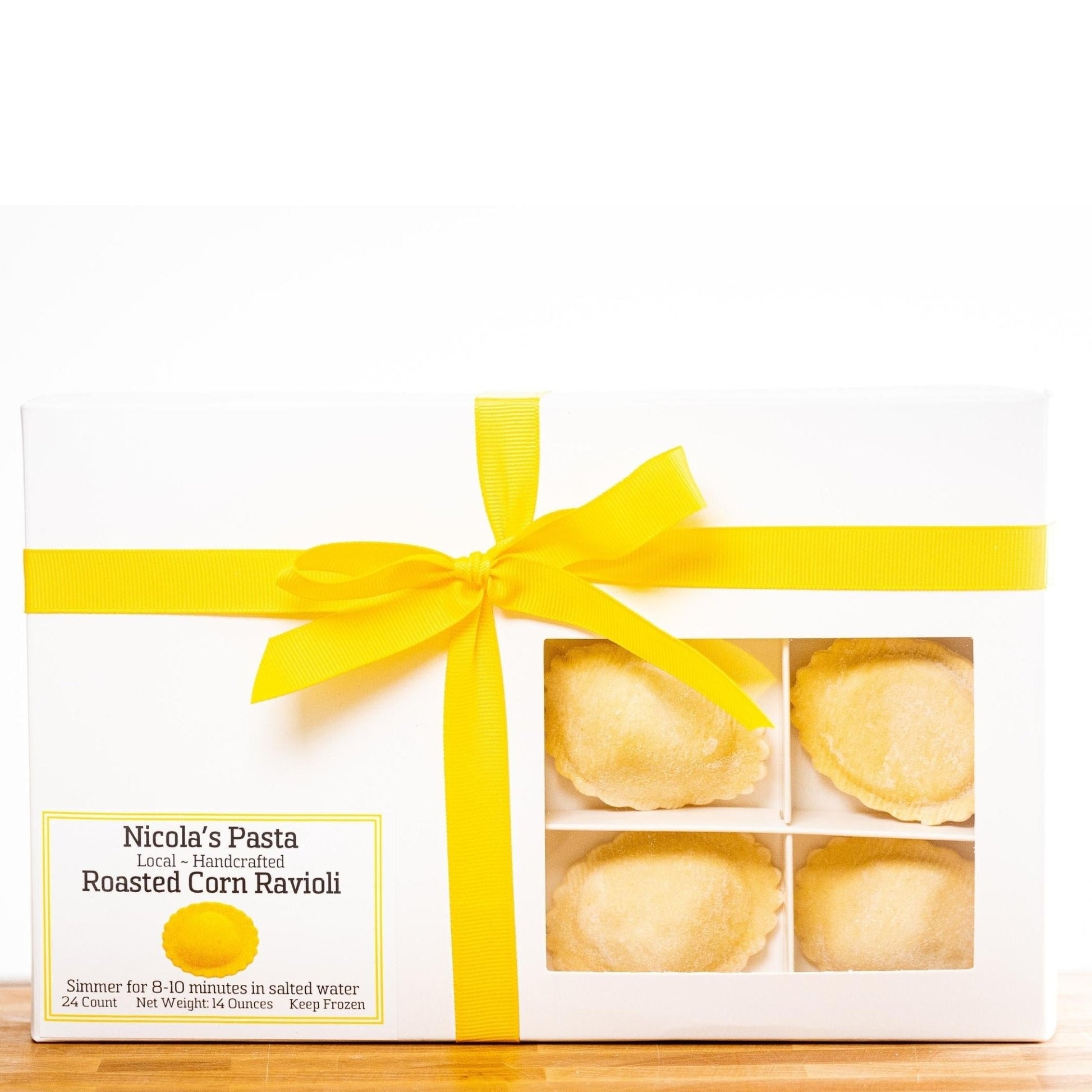 ##0##Enjoy a unique, flavor-packed blockbuster delicacy within our ravioli menu — Roasted Corn Ravioli. This gourmet and artisanal vegetarian ravioli has the goodness of organic unbleached semolina flour imported from Italy and farm-fresh roasted corn, hand shucked, and slowly roasted until caramelized and sweet. Is your mouth watering already? Why shouldn’t it, after all, we make it in traditional Italian style using freshly sourced organic eggs and Parmigiano Reggiano. Roasted Corn Ravioli is perfect for dinner or to gift someone and great for anyone who loves vegetarian delicacies. It’s made fresh to order and flash-frozen to retain freshness. So, it contains zero preservatives. Order this Italian deliciousness today and delight your family and friends.