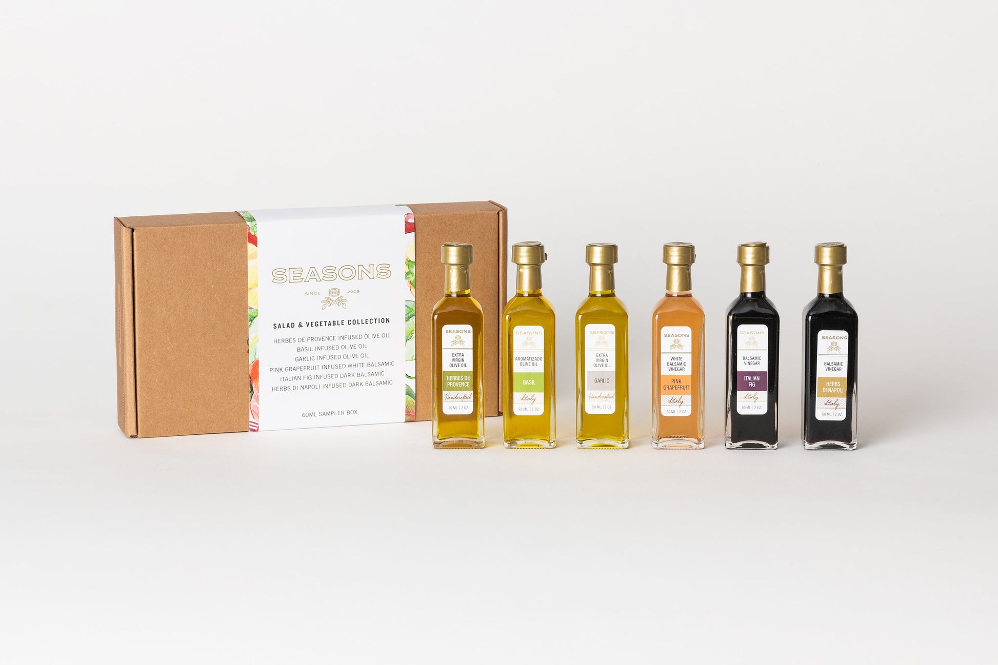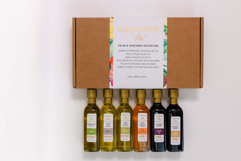 Inspired by the rich, verdant fields and orchards of the Mediterranean, this staff-favorite collection will inspire delicious kitchen adventures. Each extra virgin olive oil and balsamic vinegar is enriched with all-natural aromas that impart a sophisticated flair to salad dressings, marinades, and so much more. Drizzle over fresh-cut veggies, green salads, and homemade caprese to your heart's content.
