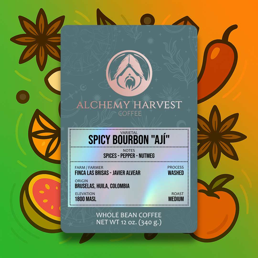 From the misty elevations of Bruselas, Huila at 1800 MASL, this rare lot from Finca Las Brisas is cultivated by producer Javier Alvear. Featuring the unique Spicy Bourbon varietal, this coffee is a captivating expression of floral elegance and warm spice.
