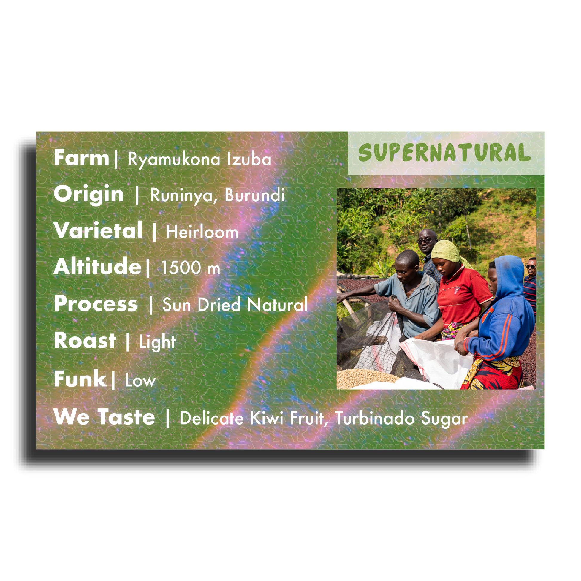 Supernatural features rotating natural process coffees. Natural process coffee involves slowly sun drying the coffee beans inside the coffee cherry, harnessing the power of fermentation to impart natural sweetness and juiciness into your cup.